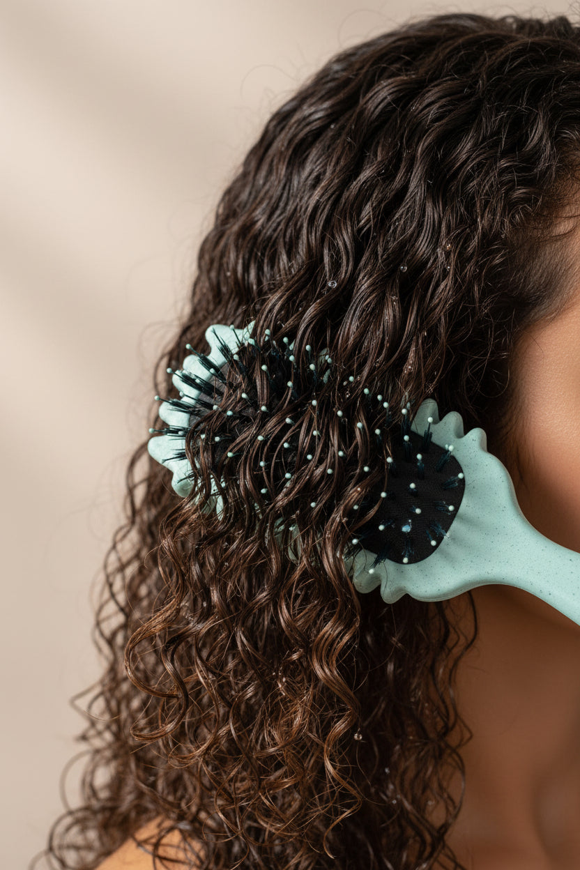 No. Its wide, rounded teeth glide smoothly through the hair, helping reduce breakage while preserving the natural curl pattern.